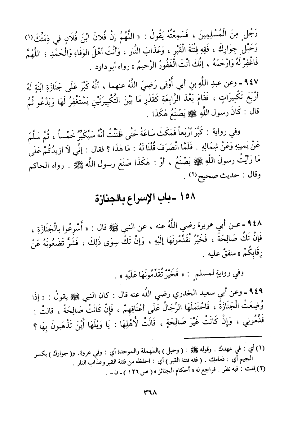 عن عبد الله بن أبي أوفى Bهما أنه كبر على جنازة ابنة له أربع تكبيرات فقام بعد الرابعة كقدر ما بين التكبيرتين يستغفر لها ويدعو ثم قال: كان رسول الله A يصنع هكذا