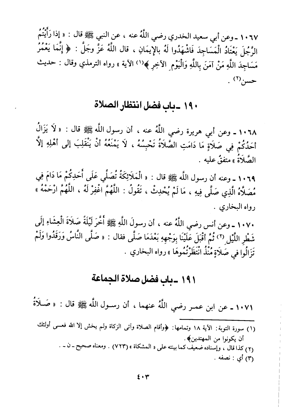 عن أبي سعيد الخدري Bهـ عن النبي A قال: " إذا رأيتم الرجل يعتاد المساجد فاشهدوا له بالإيمان قال الله D (إنما يعمر مساجد الله من آمن بالله واليوم الآخر. . الآية) رواه الترمذي وقال: حديث حسن