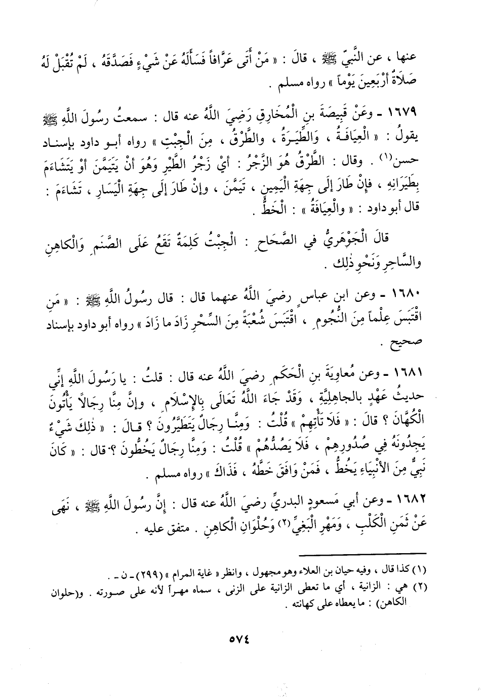 عن قبيصة بن المخارق Bهـ قال: سمعت رسول الله A يقول: " العيافة والطيرة والطرق من الجبت " رواه أبو داود بإسناد حسن