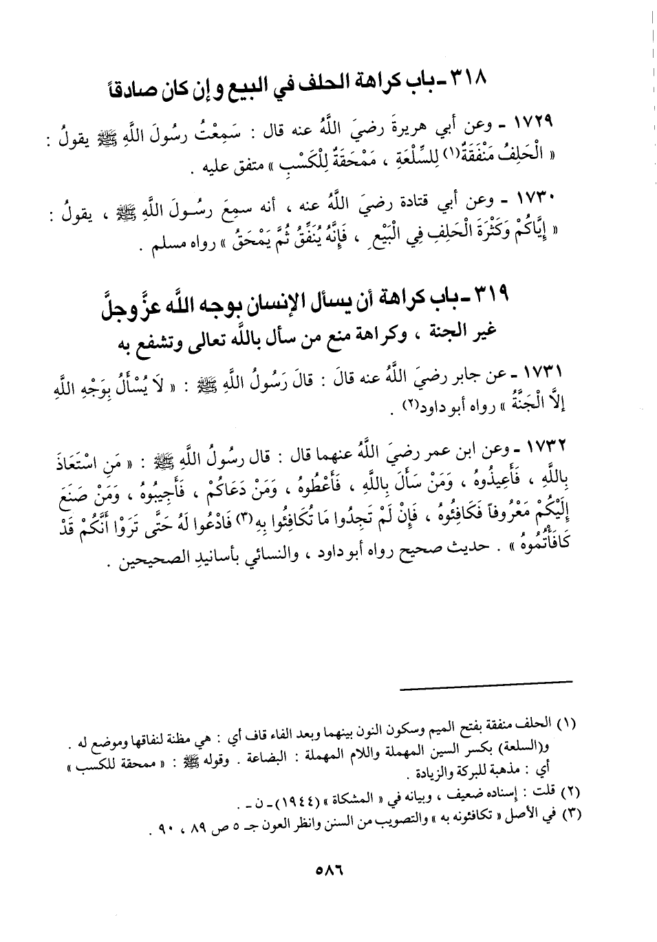 عن جابر Bهـ قال: قال رسول الله A: " لا يسأل بوجه الله إلا الجنة " رواه أبو داود