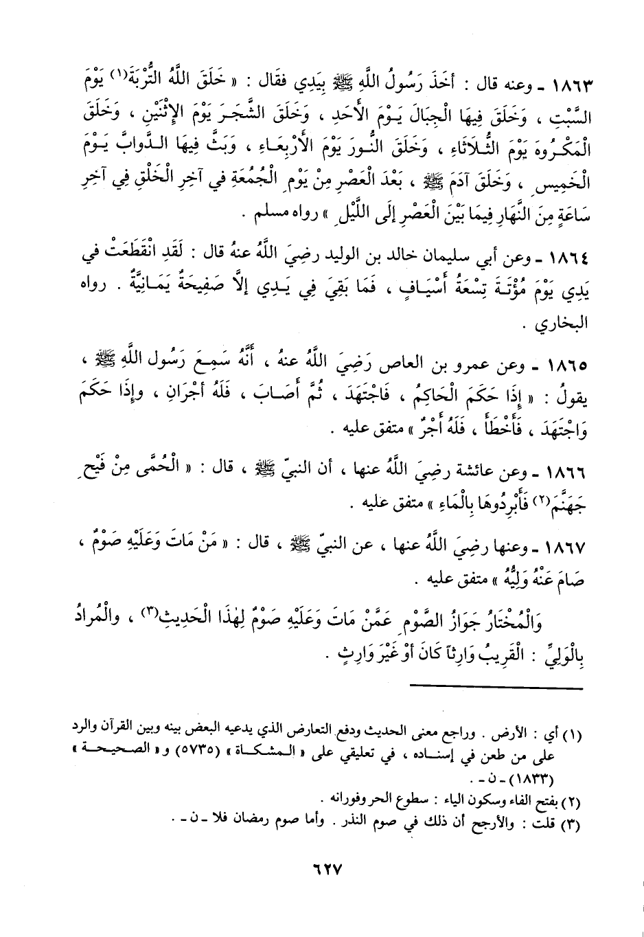 1867 - عن عائشة Bها أن النبي A قال: " من مات وعليه صيام صام عنه وليه " متفق عليه