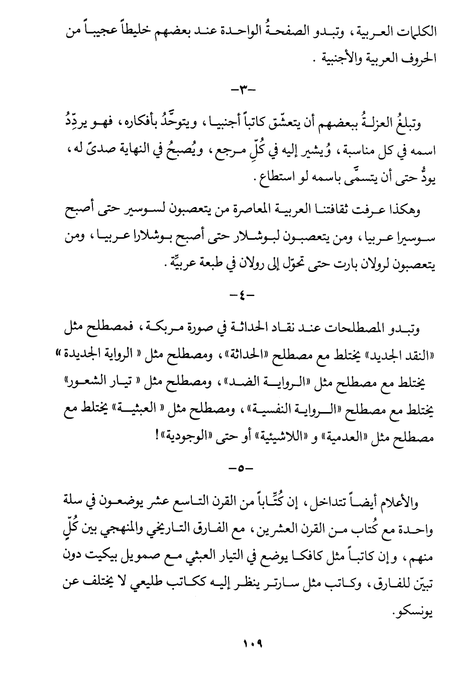 وهكذا عرفت ثقافتنا العربية المعاصرة من يتعصبون لسوسير حتى أصبح سوسيرًا عربيًّا، ومن يتعصبون لبوشلار حتى أصبح بوشلارًا عربيًّا، ومن يتعصبون لرولان بارت حتى تحول إلى رولان في طبعة عربية.
