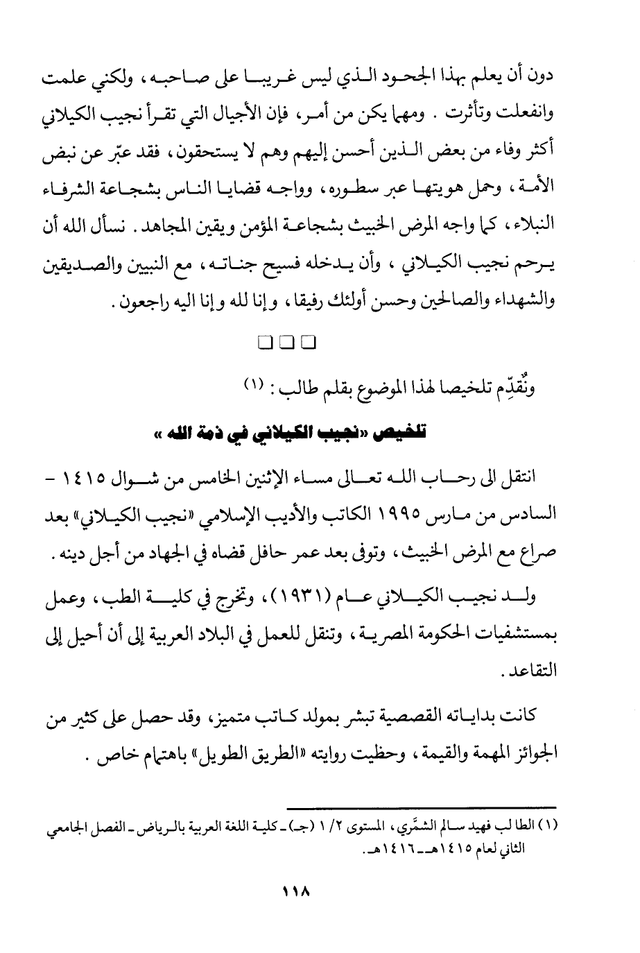 تلخيص"نجيب الكيلاني في ذمة الله"
