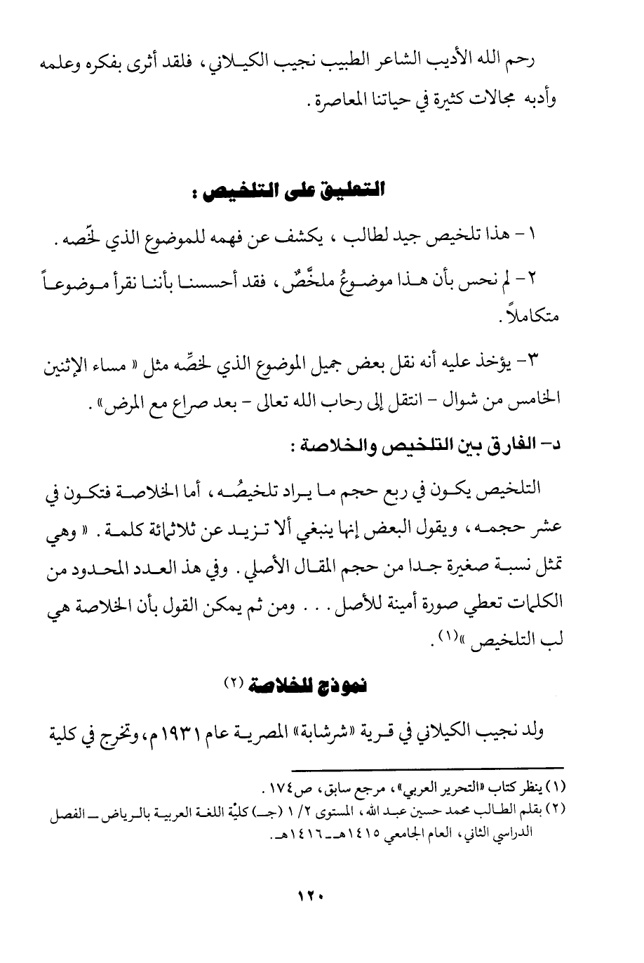 1- هذا تلخيص جيد لطالب، يكشف عن فهمه للموضوع الذي لخصه