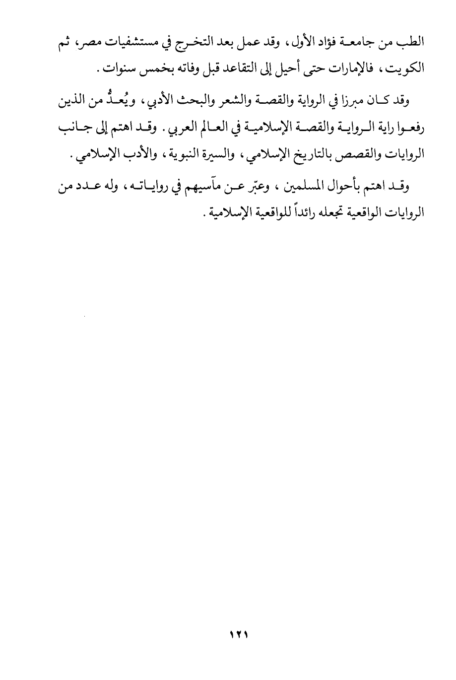 وقد اهتم بأحوال المسلمين، وعبر عن مآسيهم في رواياته، وله عدد من الروايات الواقعية تجعله رائدًا للواقعية الإسلامية.