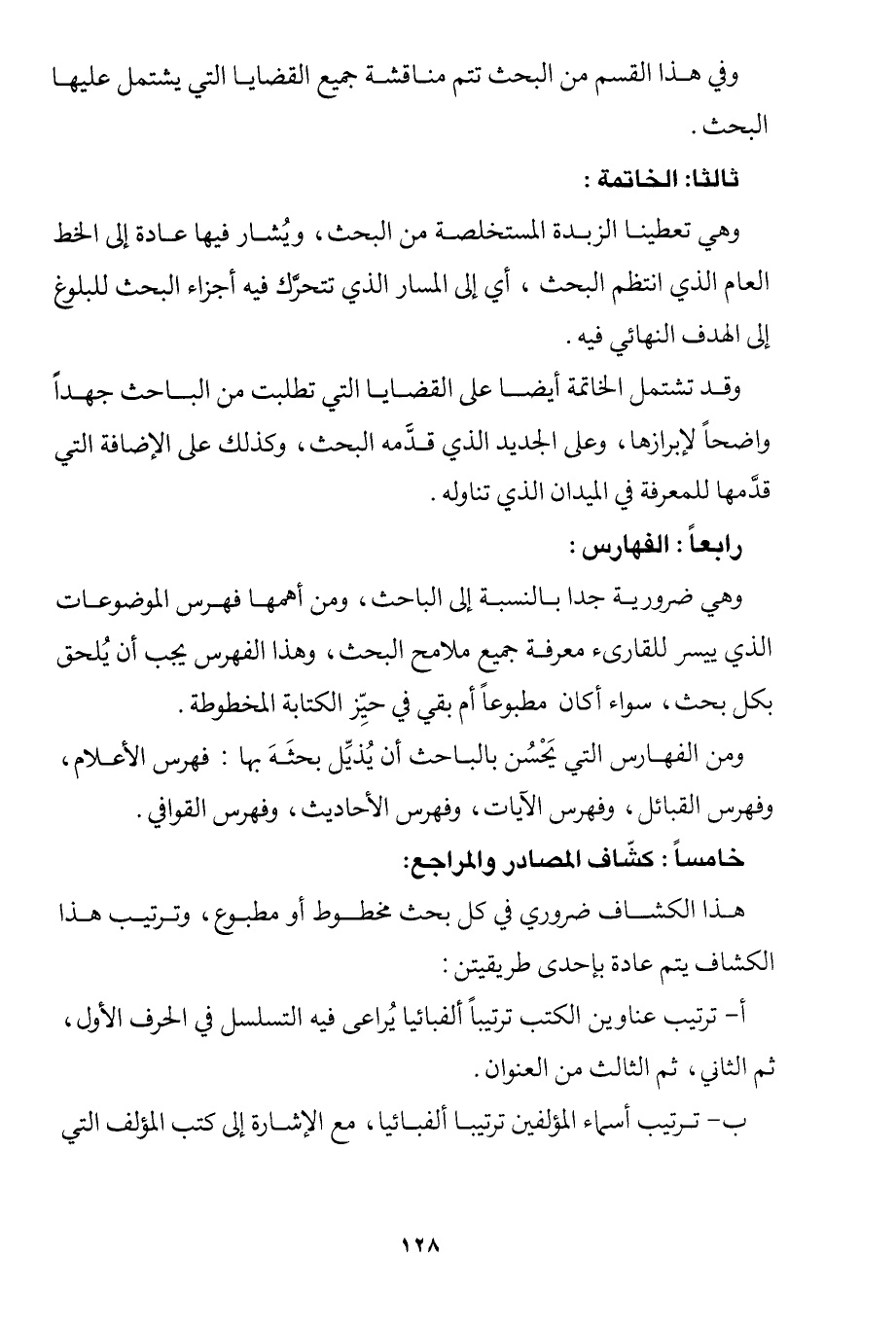 وهي تعطينا الزبدة المستخلصة من البحث، ويشار فيها عادة إلى الخط العام الذي انتظم البحث، أي إلى المسار الذي تتحرك فيه أجزاء البحث للبلوغ إلى الهدف النهائي فيه.