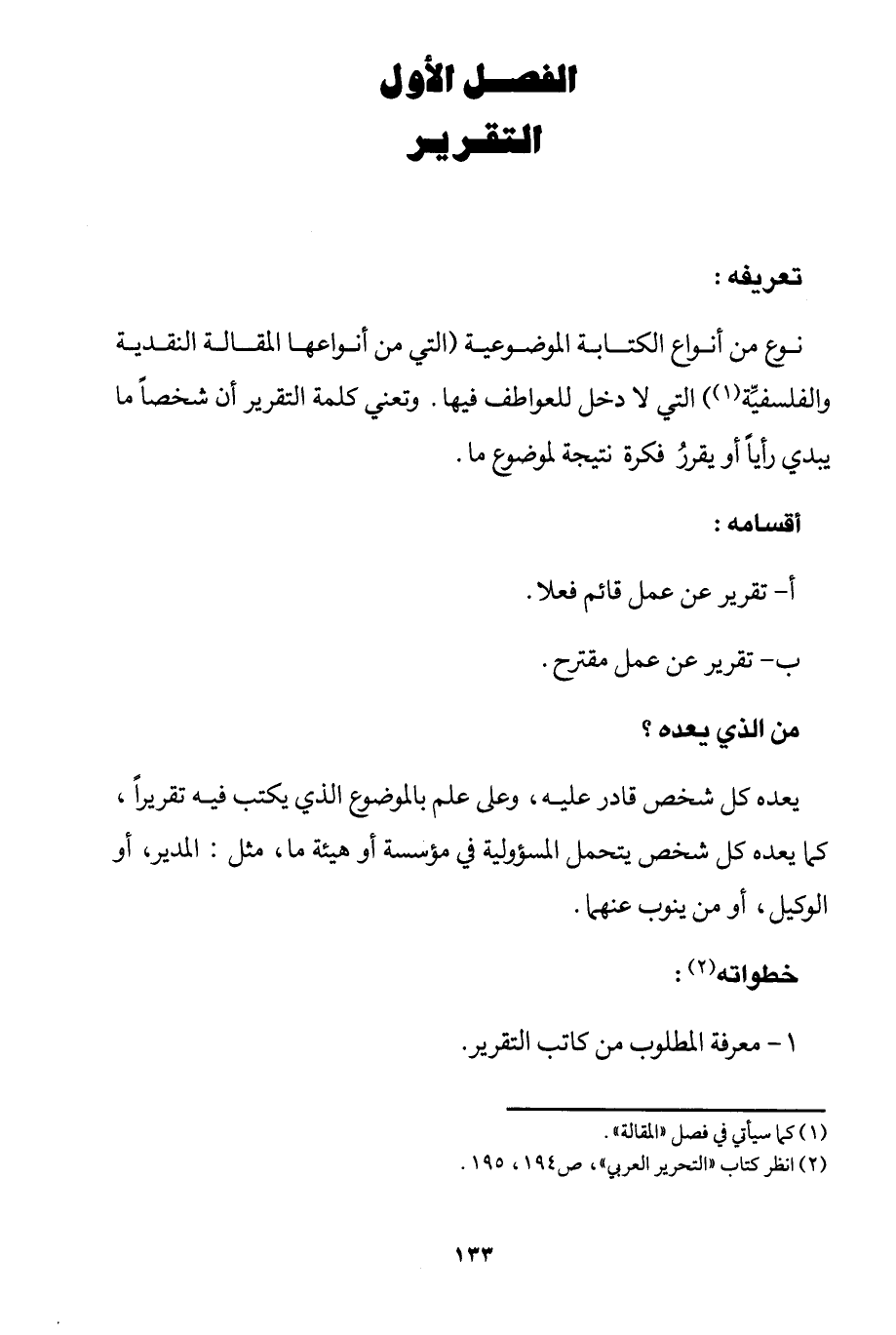 الفصل الأول: التقرير