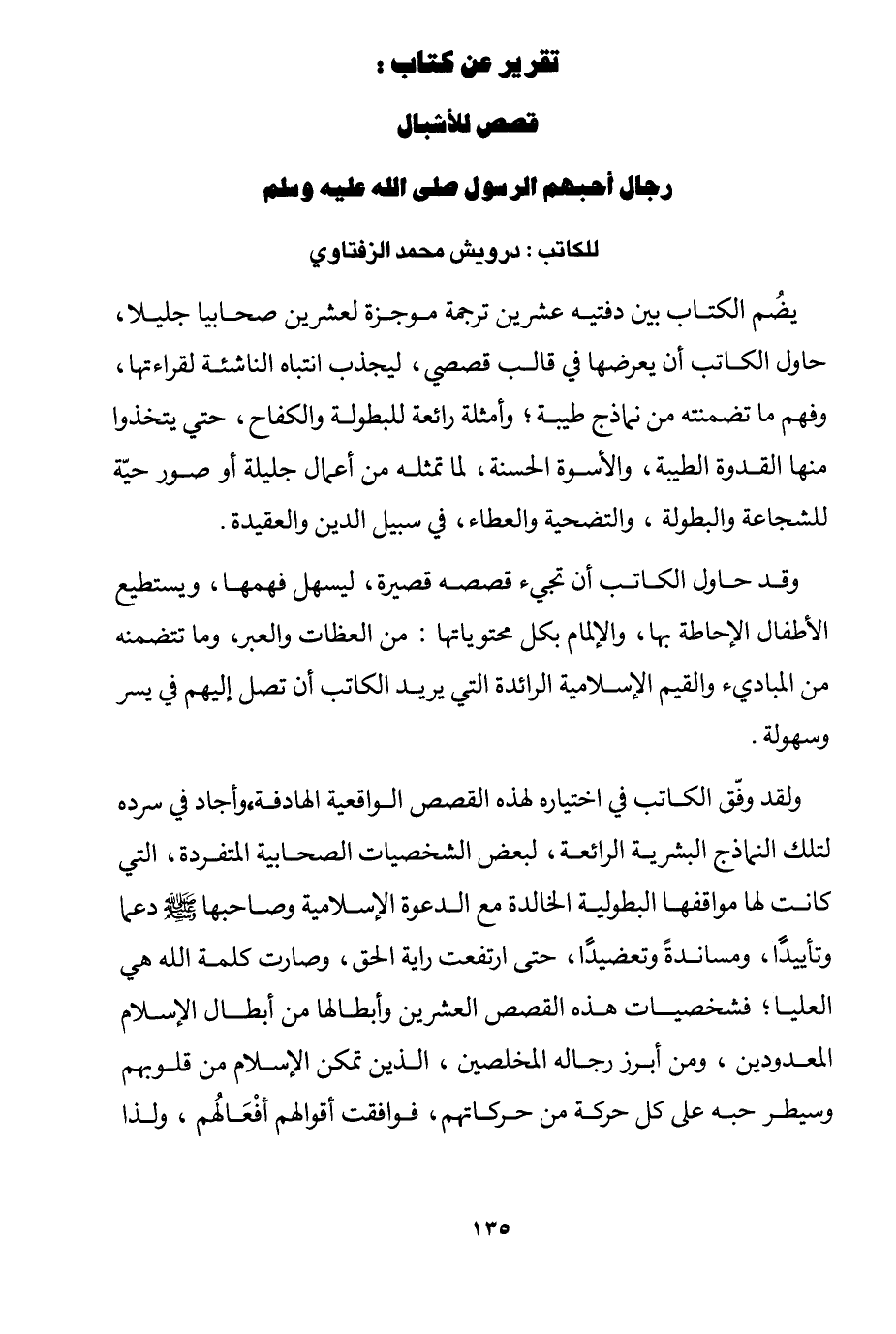 تقرير عن كتاب: قصص للأشبال رجال أحبهم الرسول صلى الله عليه وسلم: للكاتب: درويش محمد الزفتاوي