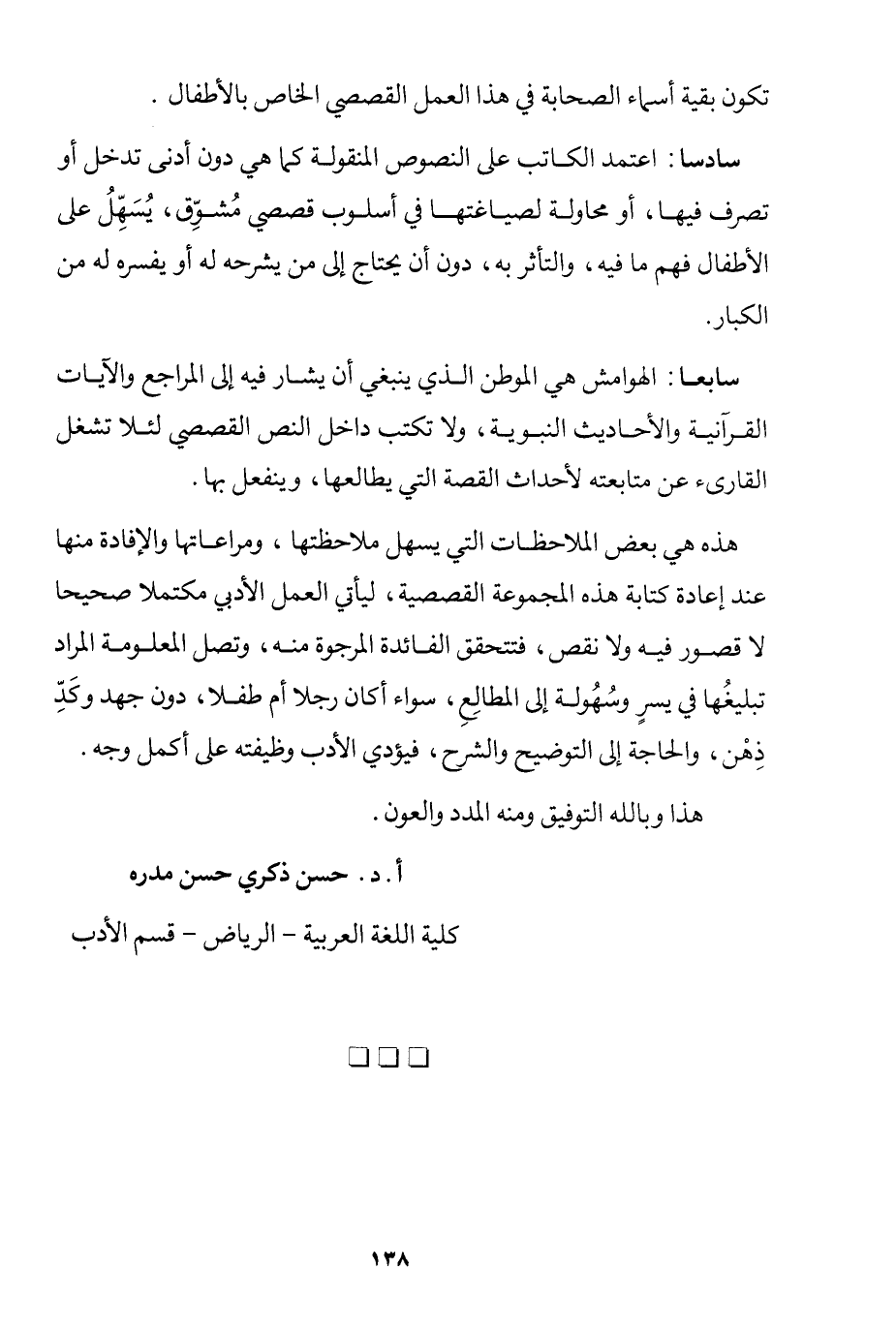 هذه هي بعض الملاحظات التي يسهل ملاحظتها، ومراعاتها، والإفادة منها عند إعادة كتابة هذه المجموعة القصصية، ليأتي العمل الأدبي مكتملًا صحيحًا لا قصور فيه ولا نقص، فتحقق الفائدة المرجوة منه، وتصل المعلومة المراد تبليغها في يسر وسهولة إلى المطالع، سواء أكان رجلًا أم طفلًا، دون جهد وكد ذهن، والحاجة إلى التوضيح والشرح، فيؤدي الأدب وظيفته على أكمل وجه.
