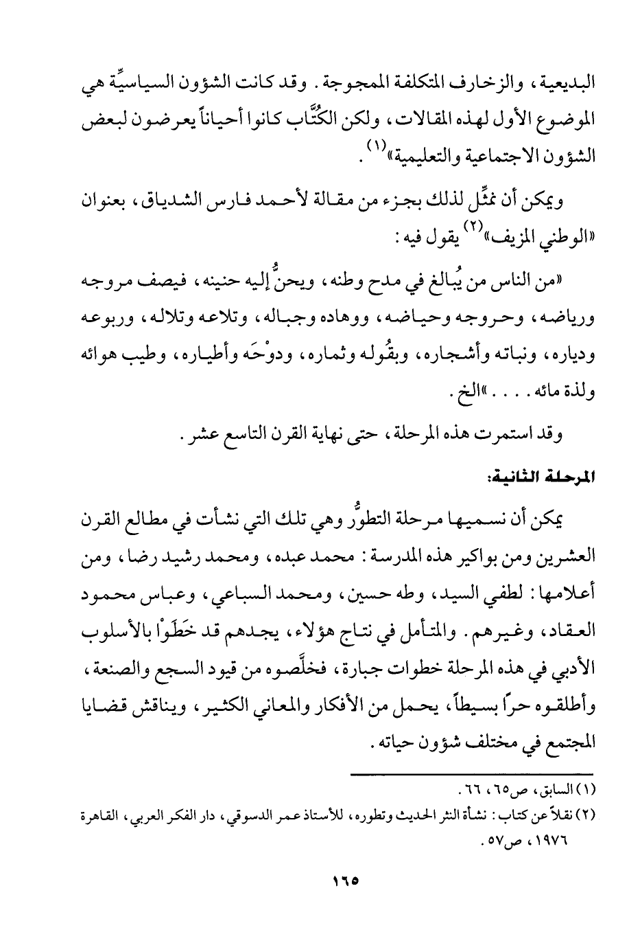 2 نقلا عن كتاب: نشأة النثر الحديث وتطوره، للأستاذ عمر الدسوقي، دار الفكر العربي، القاهرة 1976، ص57.