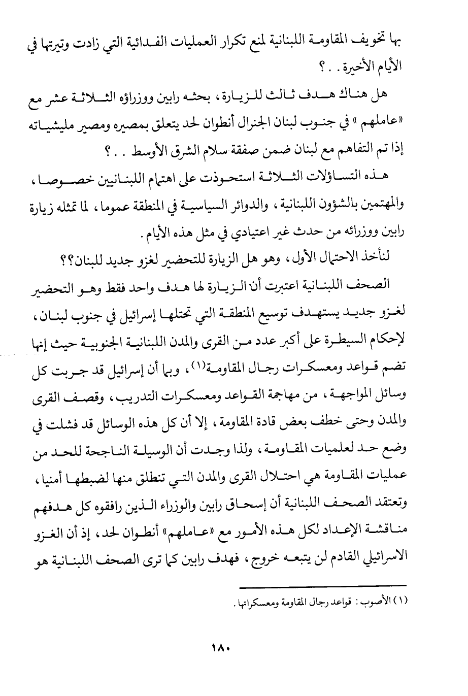 هل هناك هدف ثالث للزيارة بحثه رابين ووزراؤه الثلاثة عشر مع "عاملهم" في جنوب لبنان الجنرال أنطوان لحد يتعلق بمصيره ومصير مليشياته إذا تم التفاهم مع لبنان ضمن صفقة سلام الشرق الأوسط..؟