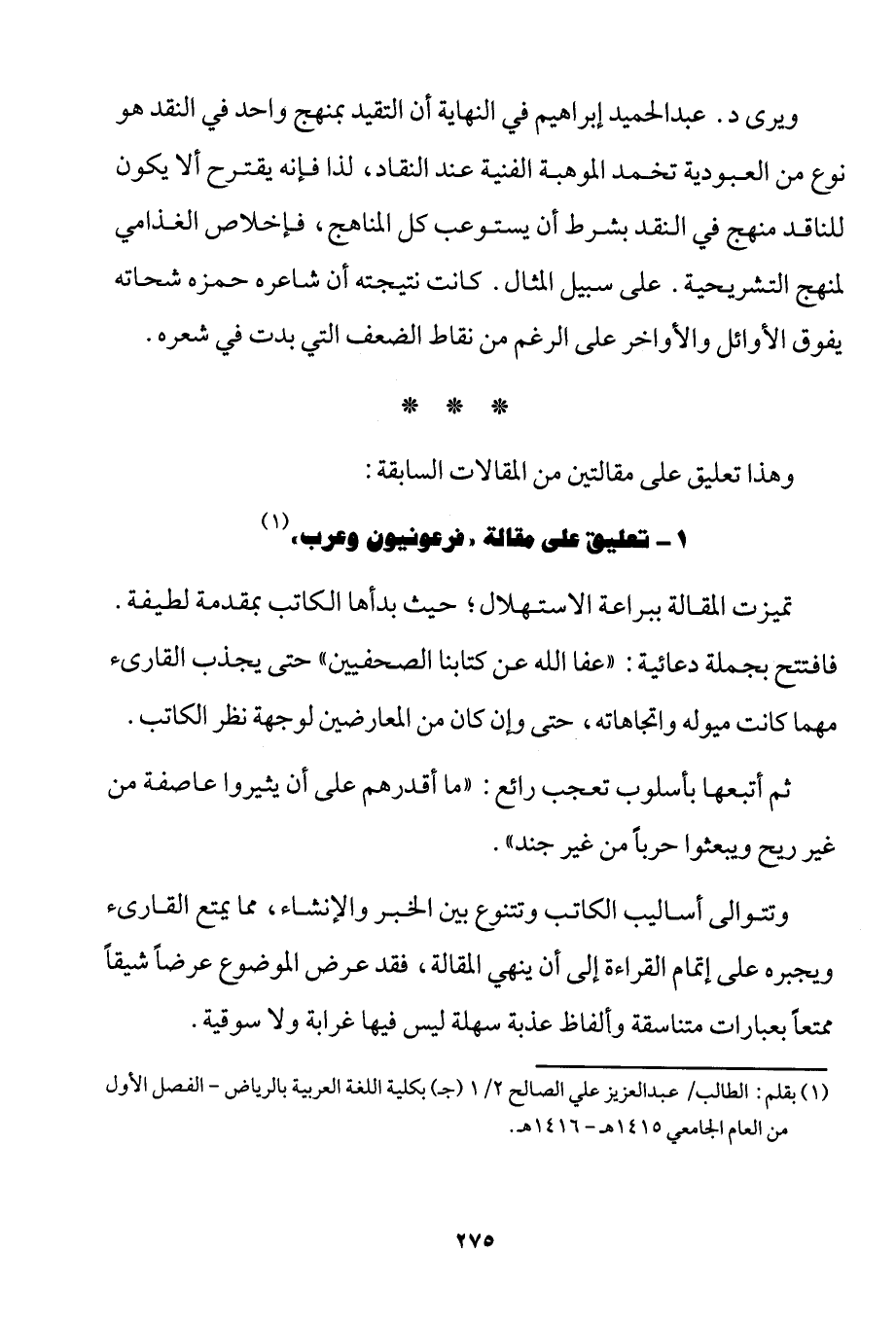 1 بقلم: الطالب/ عبد العزيز على الصالح 2/ 1"ج" بكلية اللغة العربية بالرياض ـ الفصل الأول من العام الجامعي 1415هـ-1416 هـ.