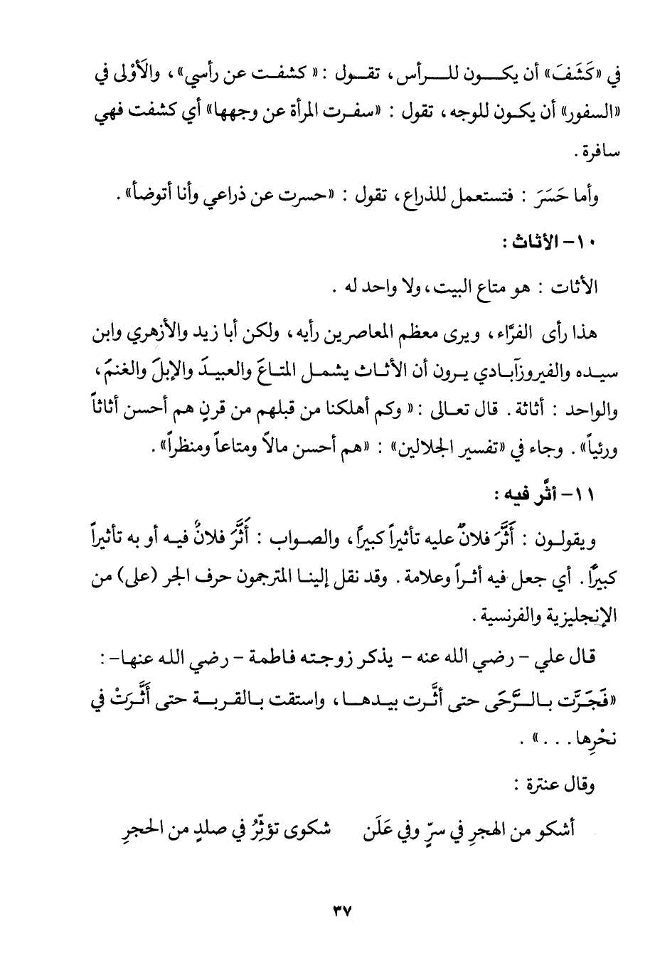 في "كَشَفَ" أن يكون للرأس، تقول: "كشفت عن رأسي"، والأولى في "السفور" أن يكون للوجه، تقول: "سفرت المرأة عن وجهها" أي كشفت فهي سافرة.