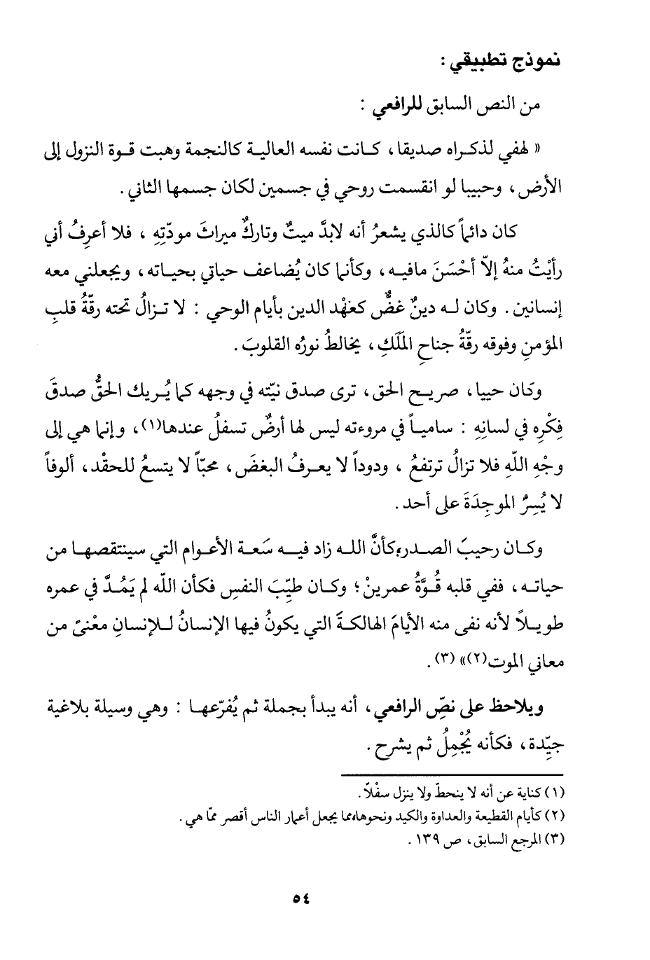 من النص السابق للرافعي: