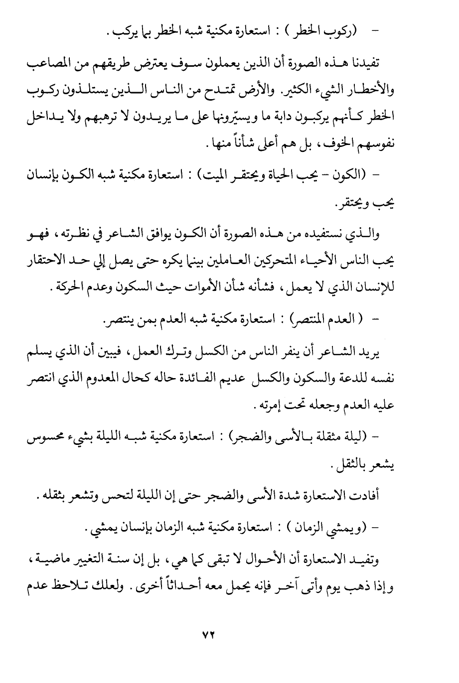- "ركوب الخطر": استعارة مكنية، شبه الخطر بما يركب.