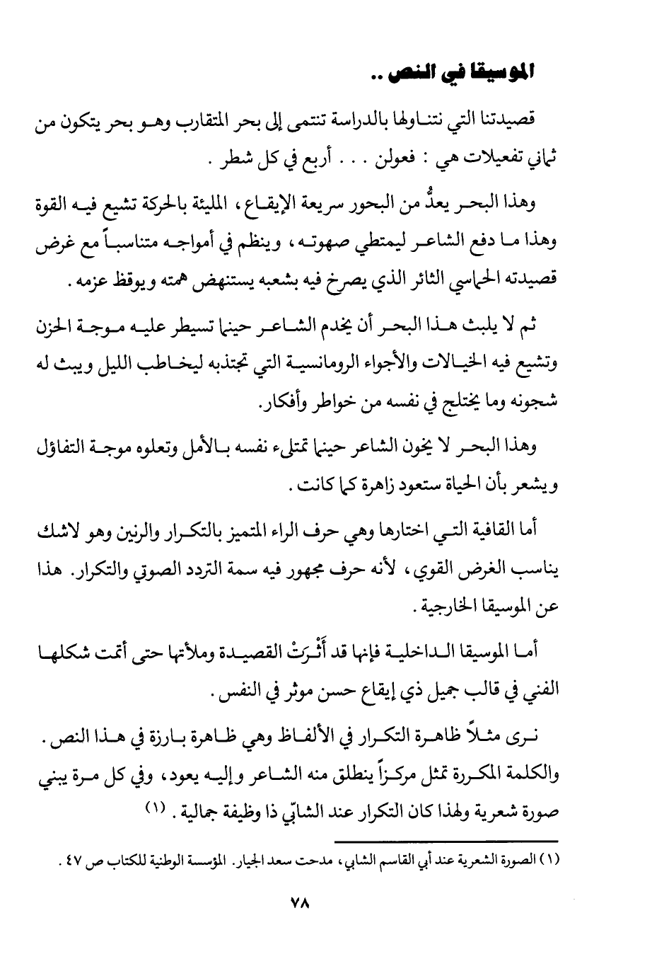 1 الصورة الشعرية عند أبي القاسم الشابي، مدحت سعد الجيار، المؤسسة الوطنية للكتاب، ص47.
