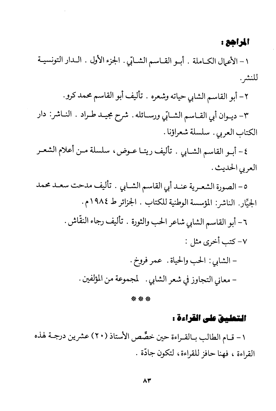 1- الأعمال الكاملة. أبو القاسم الشابي. الجزء الأول. الدار التونسية للنشر.