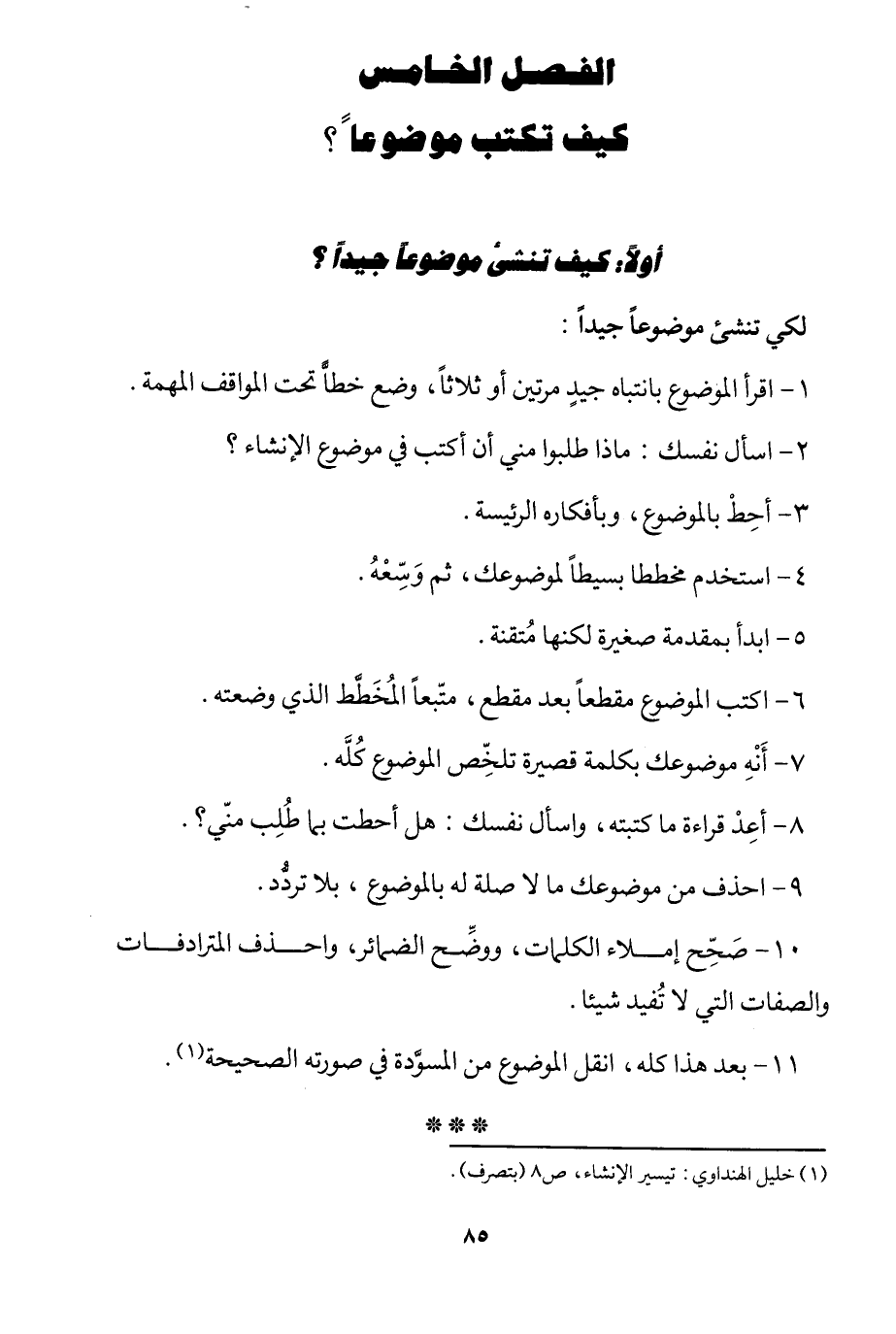 1 خليل الهنداوي: تيسير الإنشاء، ص8 "بتصرف".