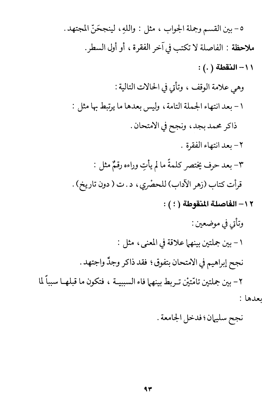 ملاحظة: الفاصلة لا تكتب في آخر الفقرة، أو أول السطر.
