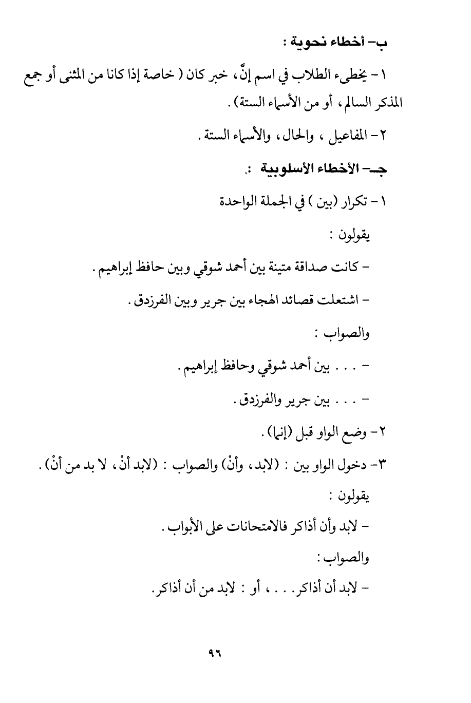 1- يخطئ الطلاب في اسم إن، خبر كان "خاصة إذا كانا من المثنى أو جمع المذكر السالم، أو من الأسماء الستة".