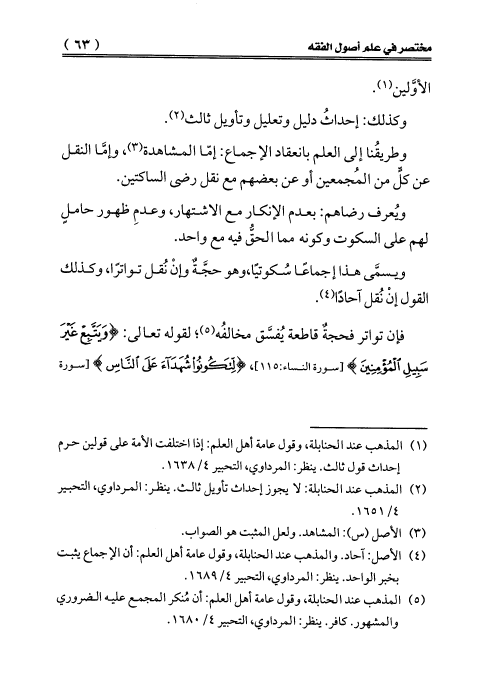 (¬4) الأصل: آحاد. والمذهب عند الحنابلة، وقول عامة أهل العلم: أن الإجماع يثبت بخبر الواحد. ينظر: المرداوي، التحبير 4/ 1689.