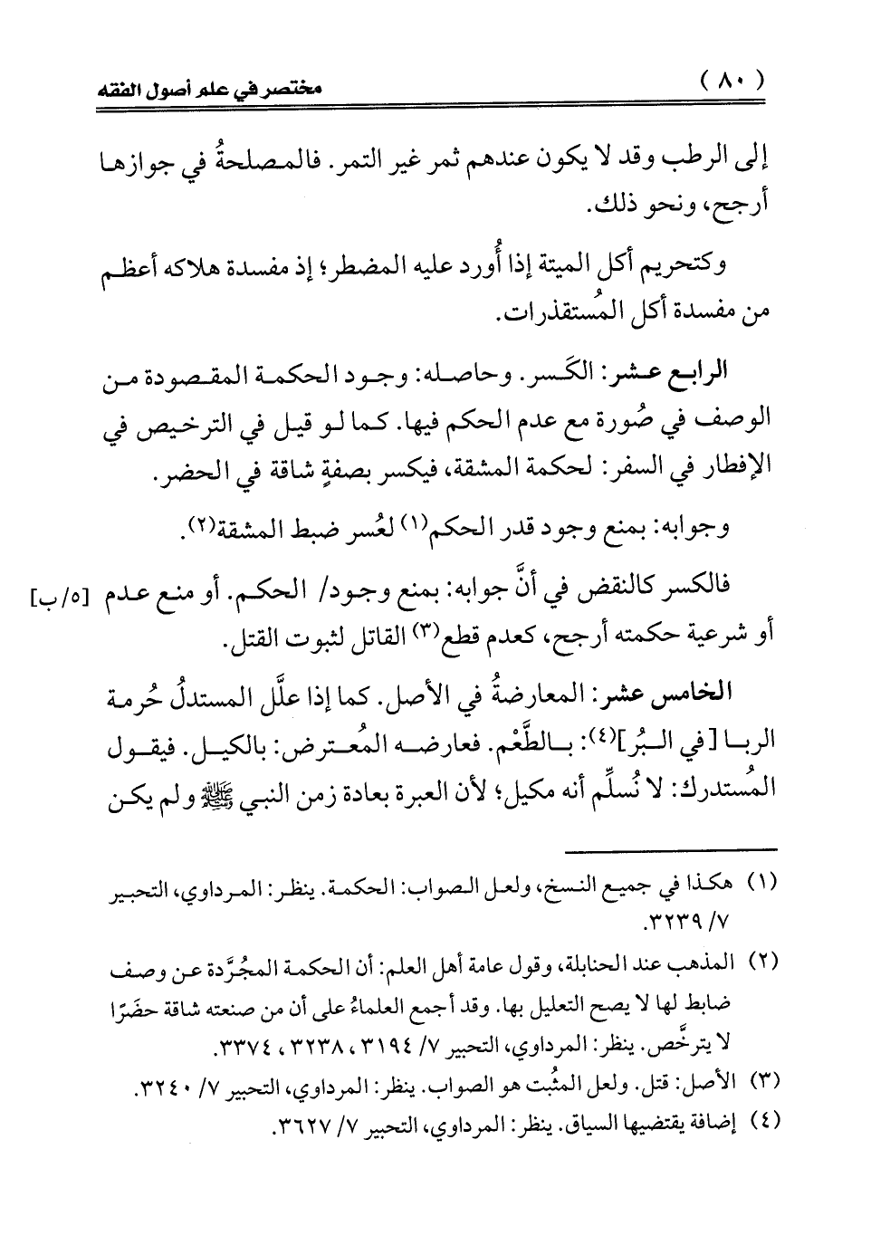 (¬1) هكذا في جميع النسخ، ولعل الصواب: الحكمة. ينظر: المرداوي، التحبير 7/ 3239.