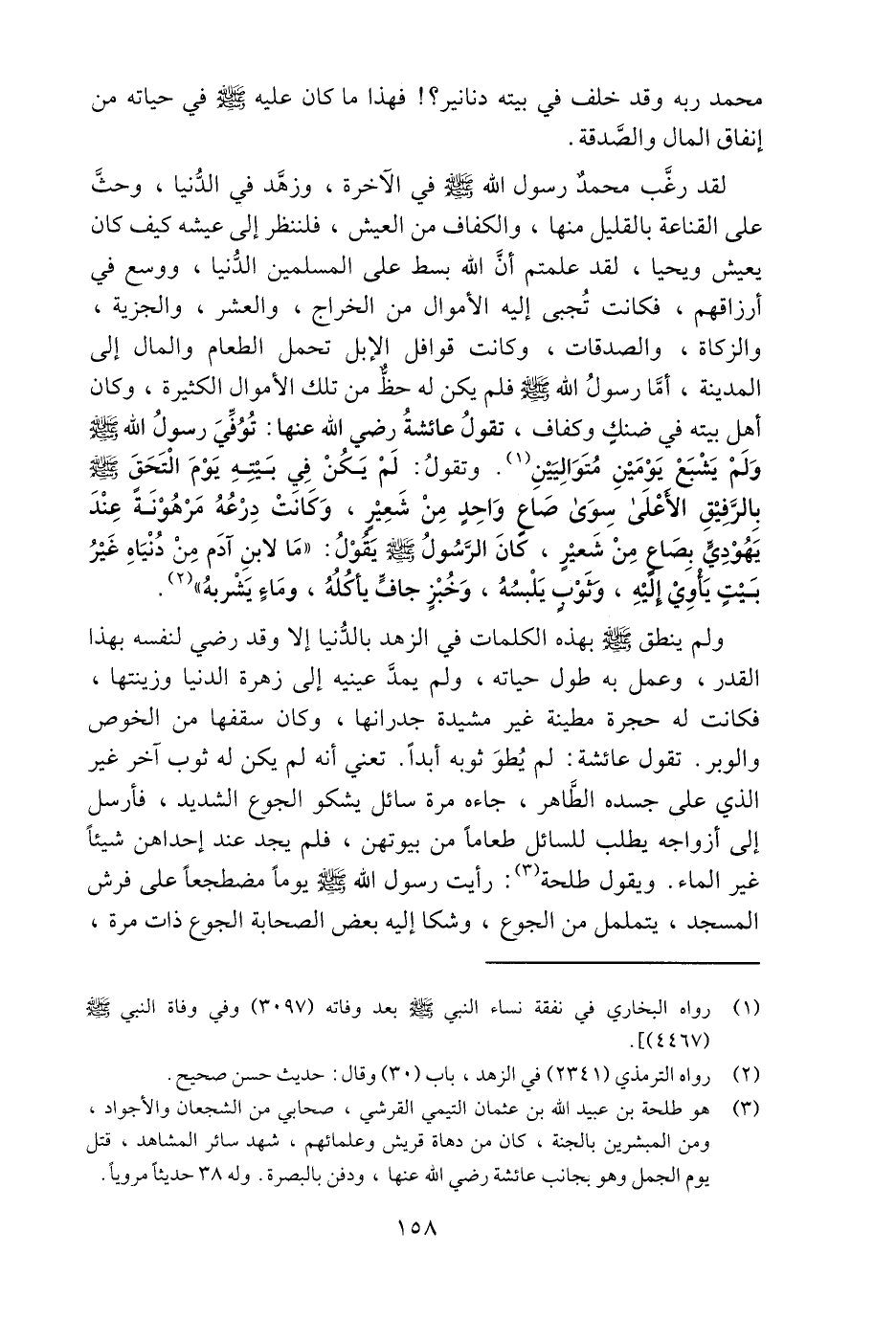 محمد ربه وقد خلف في بيته دنانير؟! فهذا ما كان عليه صلّى الله عليه وسلم في حياته من إنفاق المال والصّدقة.