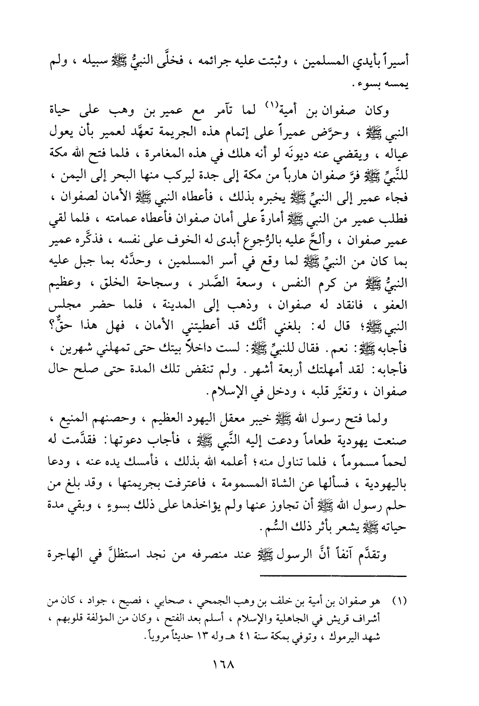 (1) هو صفوان بن أمية بن خلف بن وهب الجمحي، صحابي، فصيح، جواد، كان من أشراف قريش في الجاهلية والإسلام، أسلم بعد الفتح، وكان من المؤلفة قلوبهم، شهد اليرموك، وتوفي بمكة سنة 41 هـ وله 13 حديثا مرويا.