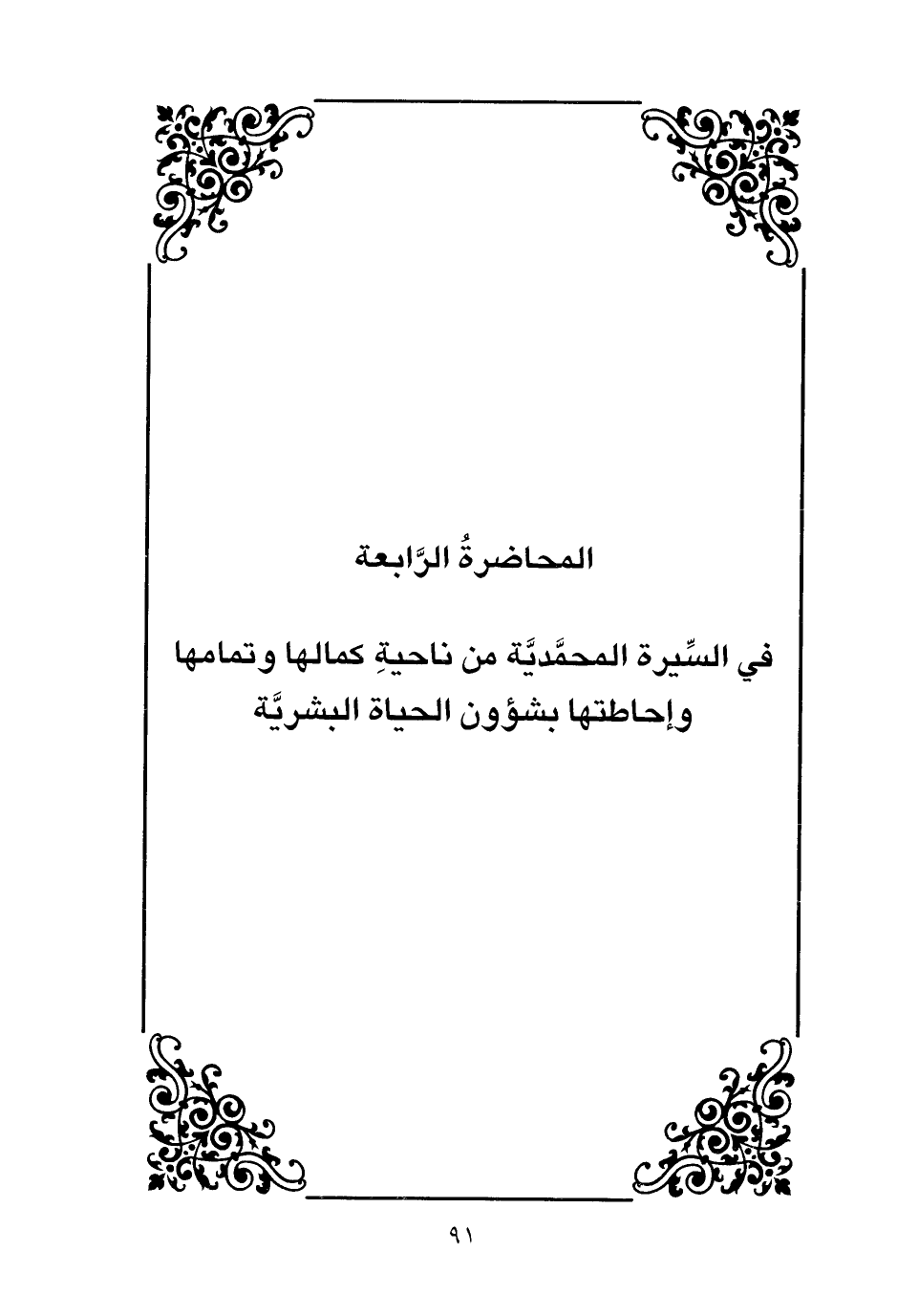 المحاضرة الرّابعة في السّيرة المحمّديّة من ناحية كمالها وتمامها وإحاطتها بشؤون الحياة البشريّة