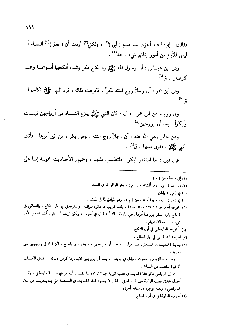 فَقَالَت إِنِّي قد أجزت مَا صنع أبي وَلَكِنِّي أردْت أَن تعلم النِّسَاء أَن لَيْسَ للآباء من أُمُور بناتهم شَيْء حد وَعَن ابْن عَبَّاس أَن رَسُول الله صلى الله عَلَيْهِ وَسلم رد نِكَاح بكر وثيب أنكحهما أَبوهُمَا وهما كارهتان ق وَعَن ابْن عمر أَن رجلا زوج ابْنَته بكرا فَكرِهت ذَلِك فَرد النَّبِي صلى الله عَلَيْهِ وَسلم نِكَاحهَا ق وَفِي رِوَايَة عَن ابْن عمر قَالَ كَانَ النَّبِي صلى الله عَلَيْهِ وَسلم ينْزع النِّسَاء من أَزوَاجهنَّ ثيبات وأبكارا بعد أَن يزوجهن