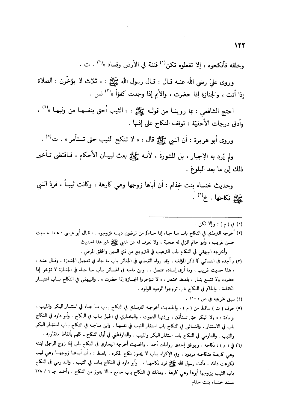وخلقه فأنكحوه إِلَّا تفعلوه تكن فتْنَة فِي الأَرْض وَفَسَاد ت