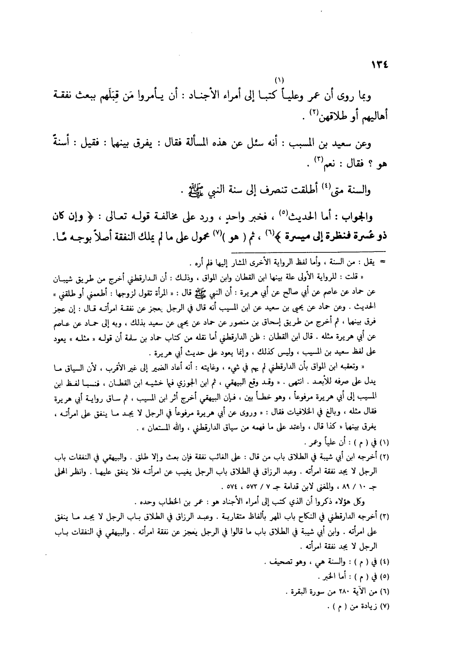 وَبِمَا روى أَن عمر وعليا كتبا إِلَى أُمَرَاء الأجناد أَن يأمروا من قبلهم ببعث نَفَقَة أَهَالِيهمْ أَو طلاقهن وَعَن سعيد بن الْمسيب أَنه سُئِلَ عَن هَذِه الْمَسْأَلَة فَقَالَ يفرق بَينهمَا فَقيل أسنة هُوَ فَقَالَ نعم وَالسّنة مَتى أطلقت تَنْصَرِف إِلَى سنة النَّبِي صلى الله عَلَيْهِ وَسلم