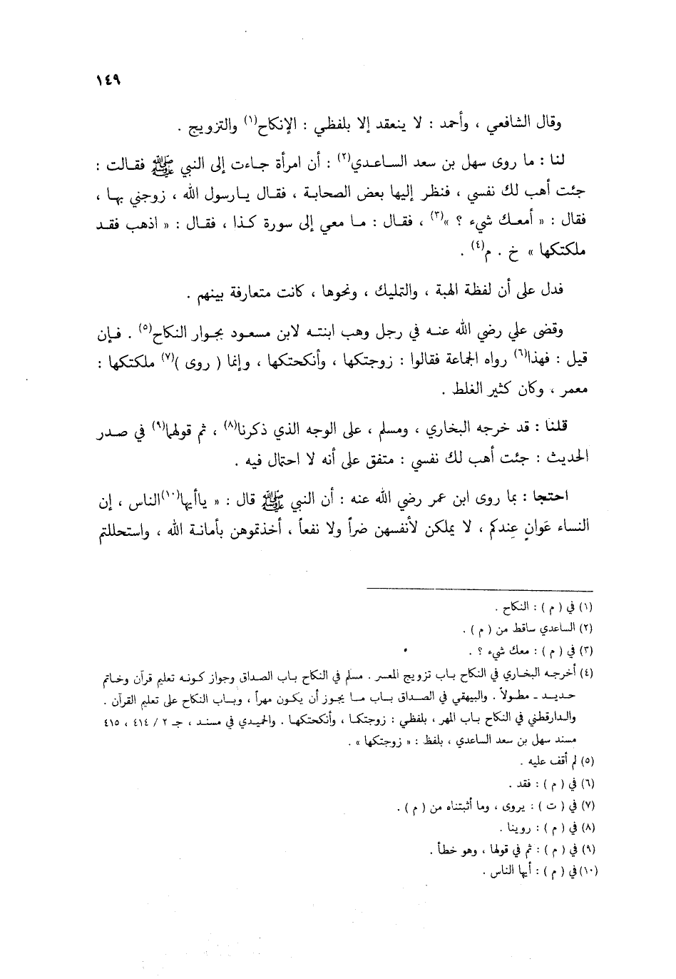 قُلْنَا قد خرجه البُخَارِيّ وَمُسلم على الْوَجْه الَّذِي ذكرنَا ثمَّ قَوْلهمَا فِي صدر الحَدِيث جِئْت أهب لَك نَفسِي مُتَّفق على أَنه لَا إحتمال فِيهِ