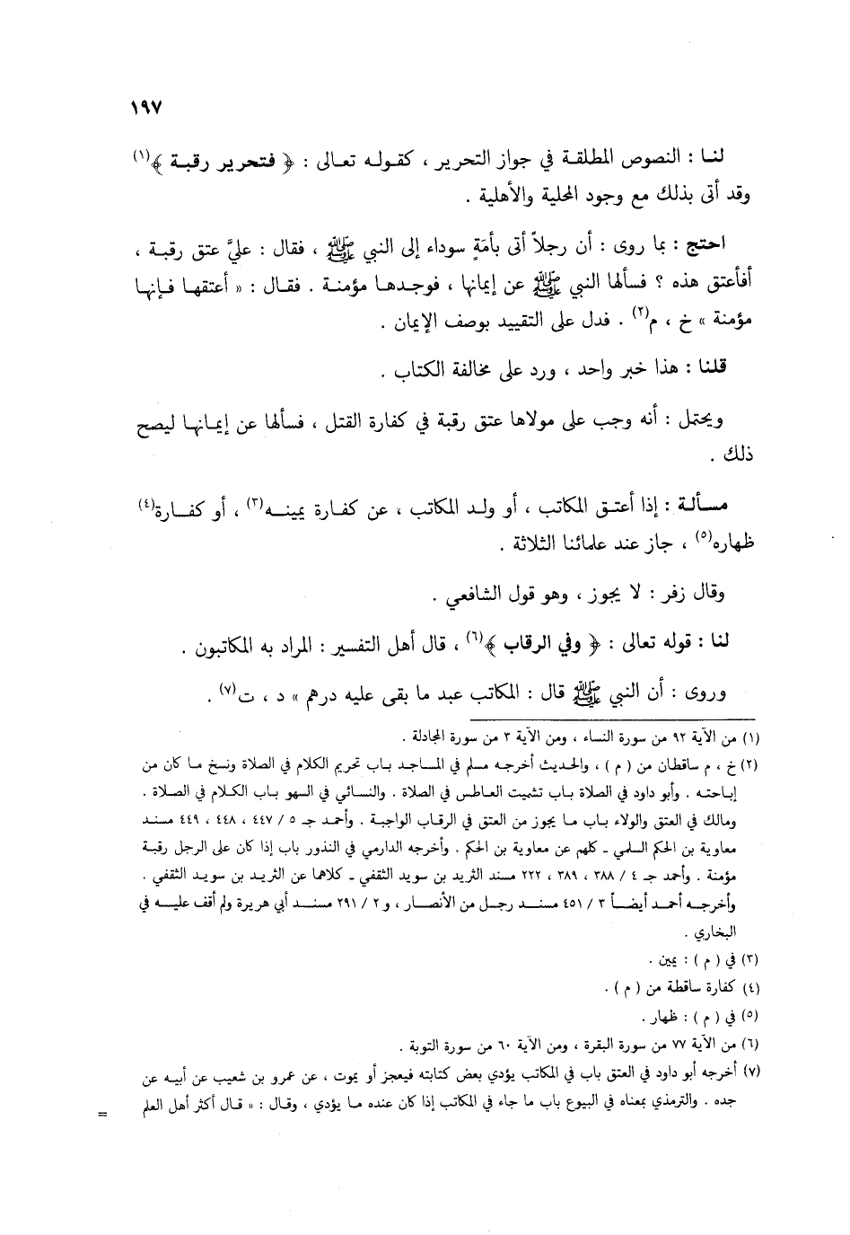 لنا النُّصُوص الْمُطلقَة فِي جَوَاز التَّحْرِير كَقَوْلِه تَعَالَى {فَتَحْرِير رَقَبَة} وَقد أَتَى بذلك مَعَ وجود الْمَحَلِّيَّة والأهلية