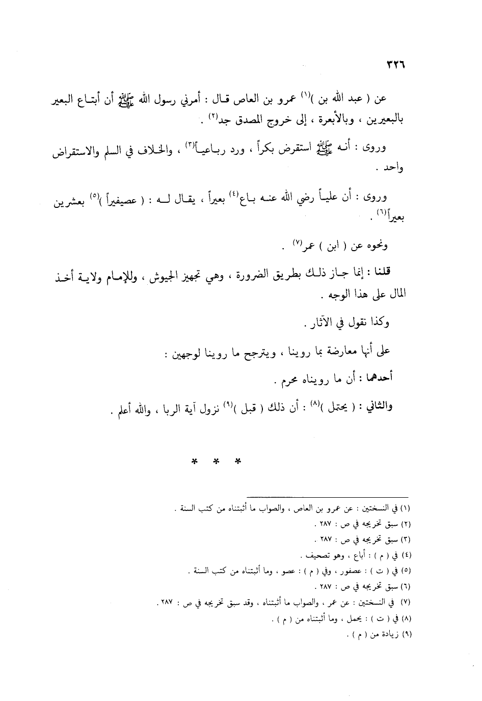 قُلْنَا إِنَّمَا جَازَ ذَلِك بطرِيق الضَّرُورَة وَهِي تجهيز الجيوش وَللْإِمَام ولَايَة أَخذ المَال على هَذَا الْوَجْه وَكَذَا نقُول فِي الْآثَار على أَنَّهَا مُعَارضَة بِمَا روينَا ويترجح مَا روينَا لوَجْهَيْنِ أَحدهمَا أَن مَا روينَاهُ محرم وَالثَّانِي (يحْتَمل) إِن ذَلِك قبل نزُول آيَة الرِّبَا وَالله أعلم