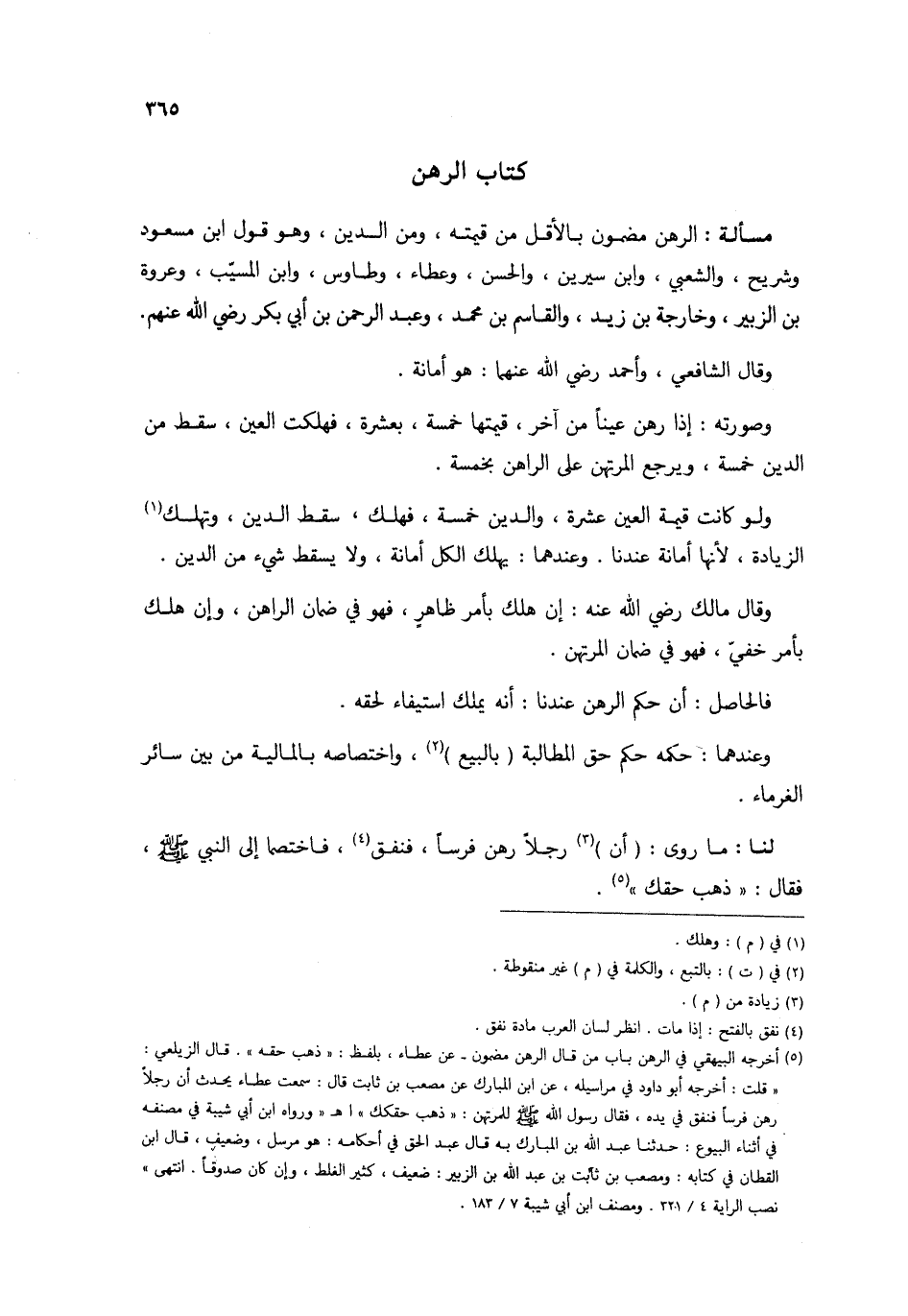 مَسْأَلَة الرَّهْن مَضْمُون بِالْأَقَلِّ من قِيمَته وَمن الدّين وَهُوَ قَول ابْن مَسْعُود وَشُرَيْح وَالشعْبِيّ وَابْن سِيرِين وَالْحسن وَعَطَاء وَطَاوُس وَابْن الْمسيب وَعُرْوَة بن الزبير وخارجة بن زيد وَالقَاسِم بن مُحَمَّد وعبد الرحمن بن أبي بكر رَضِي الله عَنْهُم وَقَالَ الشَّافِعِي وَاحْمَدْ رَضِي الله عَنْهُمَا هُوَ أَمَانَة