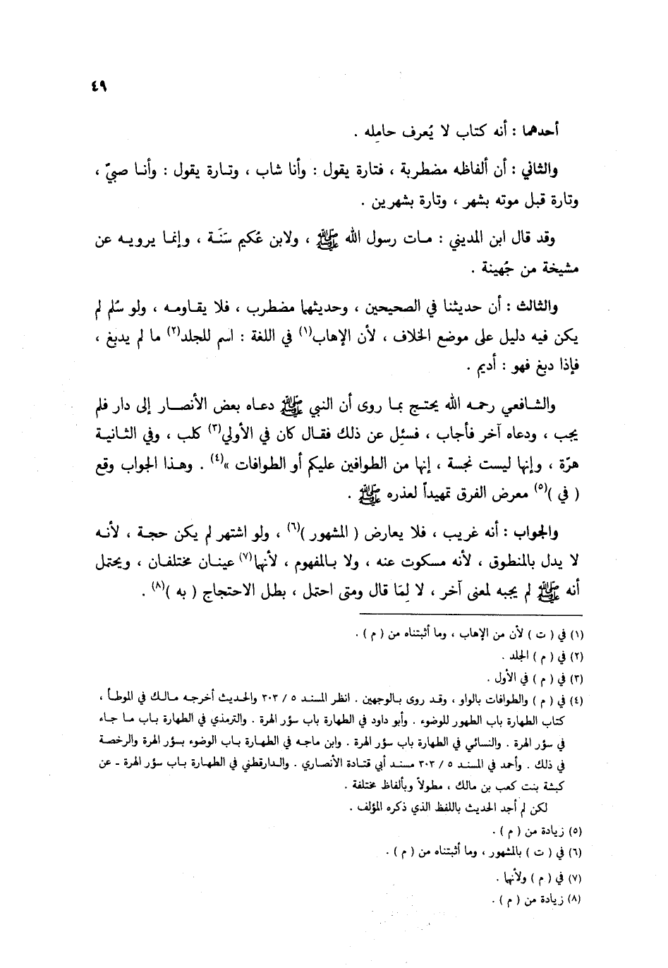 وَالثَّانِي أَن أَلْفَاظه مضطربه فَتَارَة يَقُول وَأَنا شَاب وَتارَة يَقُول وَأَنا صبي وَتارَة قبل مَوته بِشَهْر وَتارَة بشهرين