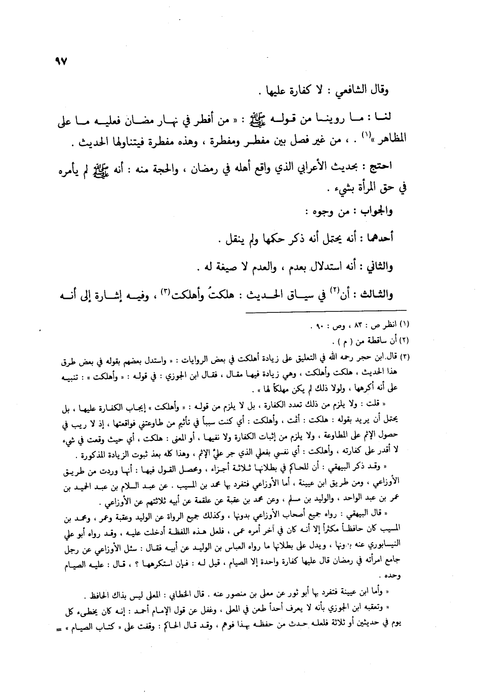 احْتج بِحَدِيث الْأَعرَابِي الَّذِي وَاقع اهله فِي رَمَضَان وَالْحجّة مِنْهُ أَنه صلى الله عَلَيْهِ وَسلم لم يَأْمُرهُ فِي حق الْمَرْأَة بِشَيْء وَالْجَوَاب من وُجُوه أَحدهمَا أَنه يحتم أَنه ذكر حكمهَا وَلم ينْقل وَالثَّانِي أَنه اسْتِدْلَال بِعَدَمِ والعدم لَا صِيغَة لَهُ وَالثَّالِث أَن فِي سِيَاق الحَدِيث هَلَكت وأهلكت وَفِيه إِشَارَة إِلَى أَنه