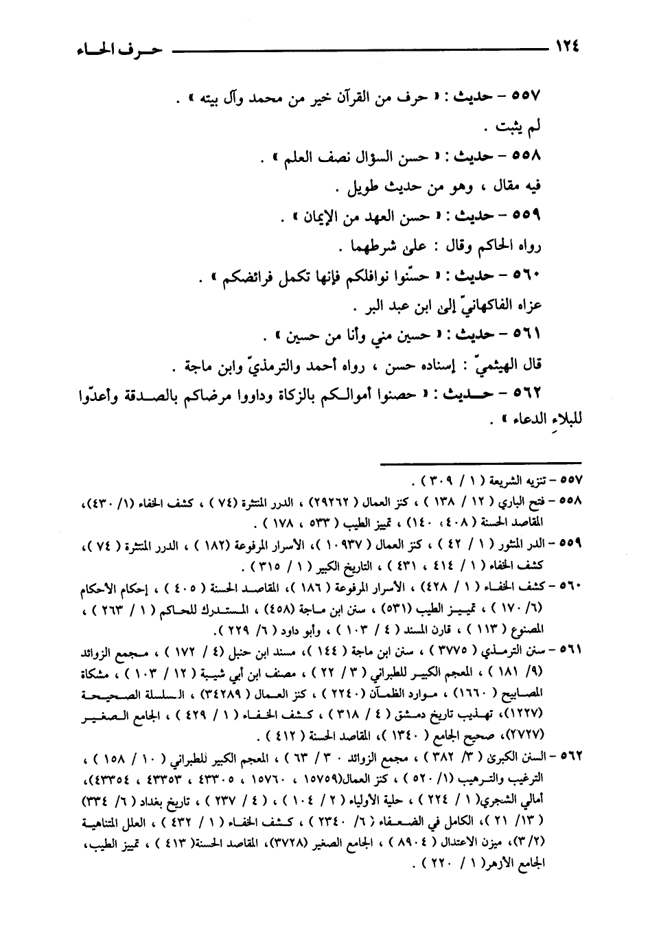 561 - حَدِيث: " حُسَيْن مني وَأَنا من حُسَيْن ". قَالَ الهيثمي: إِسْنَاده حسن، وَرَوَاهُ أَحْمد التِّرْمِذِيّ وَابْن ماجة.