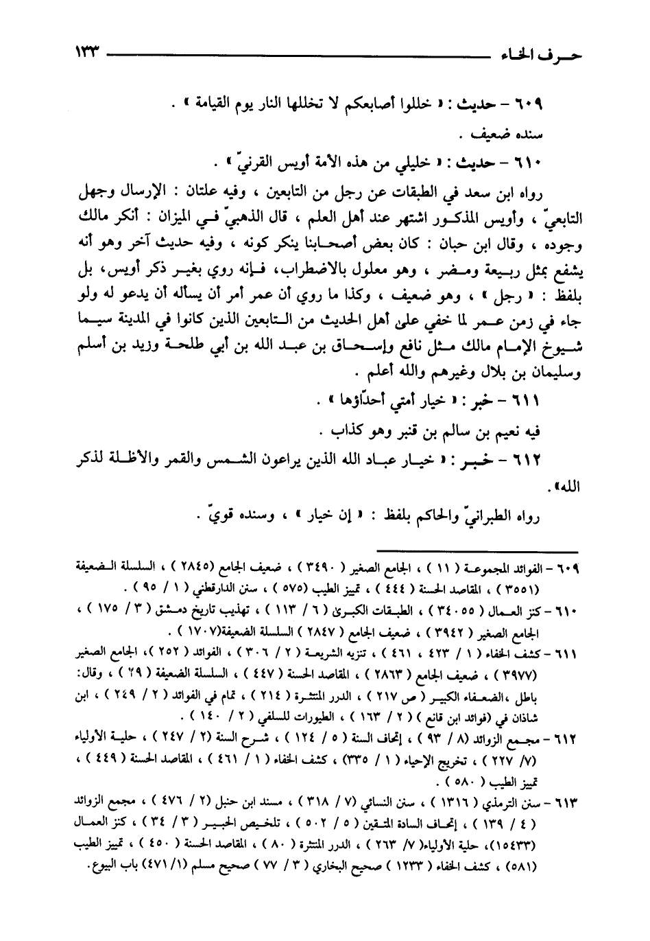 612 - خبر: " خِيَار عباد الله الَّذين يراعون الشَّمْس وَالْقَمَر والأظلة لذكر الله ". رَوَاهُ الطَّبَرَانِيّ وَالْحَاكِم بِلَفْظ: " إِن خِيَار "، وَسَنَده قوي.