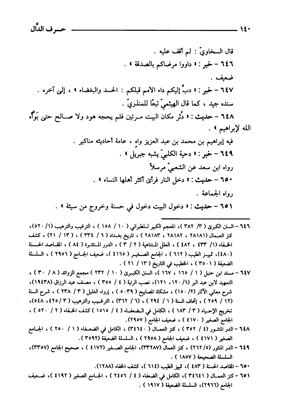 646 - خبر: " داووا مرضاكم بِالصَّدَقَةِ ". ضَعِيف.