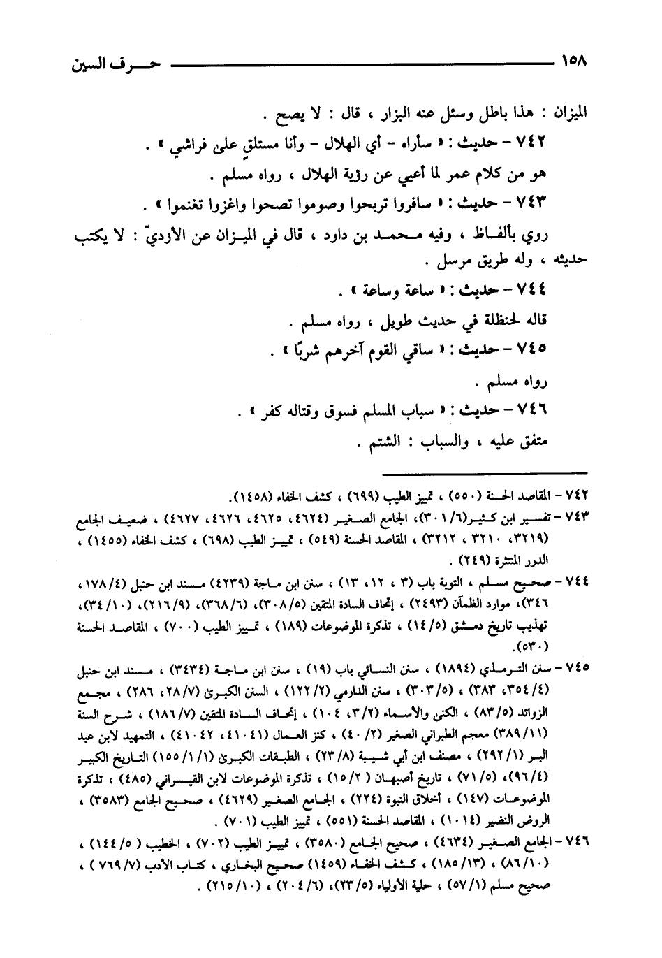 742 - حَدِيث: " سأراه - أَي الْهلَال - وَأَنا مستلق على فِرَاشِي ". هُوَ من كَلَام عمر لما أعيي عَن رُؤْيَة الْهلَال، رَوَاهُ مُسلم.