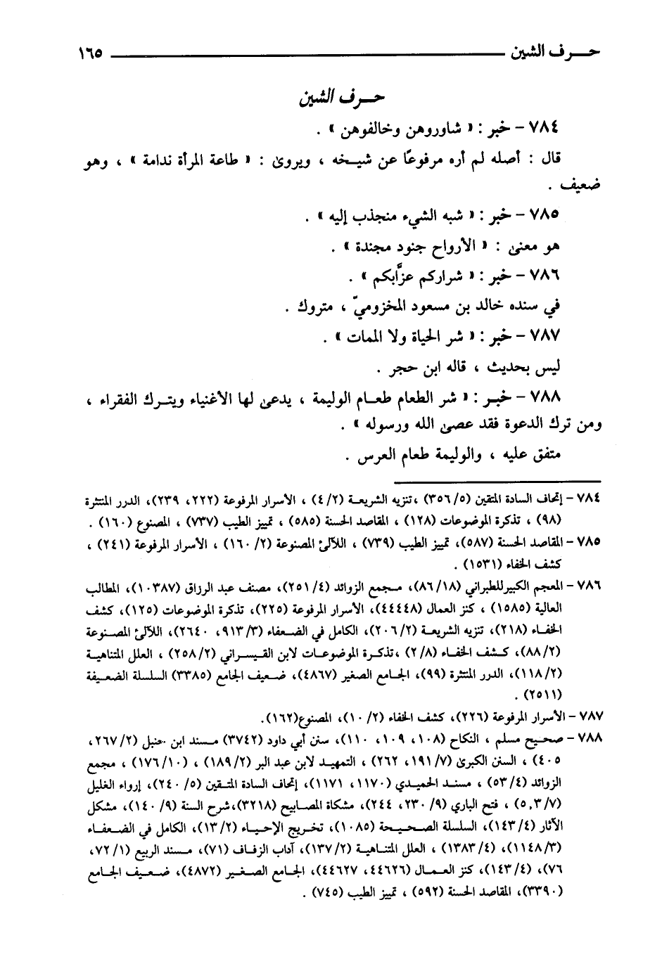 786 - خبر: " شِرَاركُمْ عُزَّابُكُمْ ". فِي سَنَده خَالِد بن مَسْعُود المَخْزُومِي، مَتْرُوك.