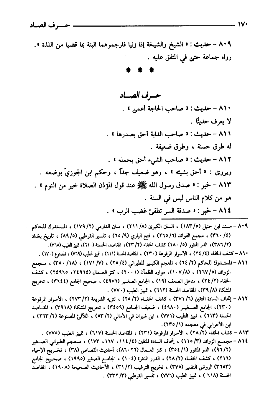 809 - حَدِيث: " الشَّيْخ وَالشَّيْخَة إِذا زَنَيَا فَارْجُمُوهُمَا الْبَتَّةَ بِمَا قضيا من اللَّذَّة ". رَوَاهُ جمَاعَة حَتَّى فِي الْمُتَّفق عَلَيْهِ.