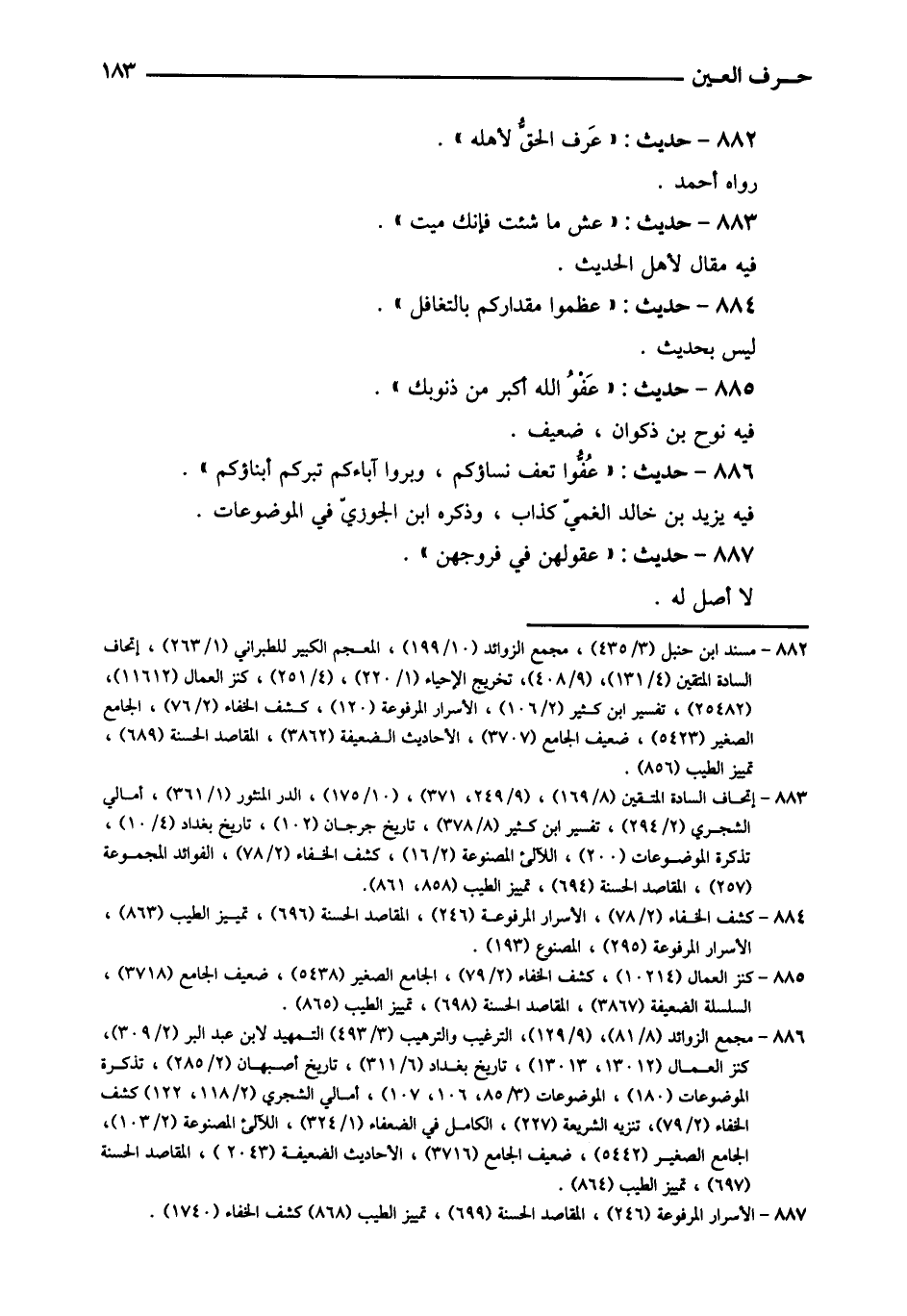 886 - حَدِيث: " عفوا تعف نِسَاؤُكُمْ، وبروا آبَاءَكُم تبركم أبناءكم ". فِيهِ يزِيد بن خَالِد الغمي كَذَّاب، وَذكره ابْن الْجَوْزِيّ فِي الموضوعات.