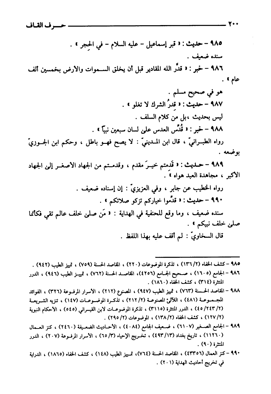 986 - خبر: " قدر الله الْمَقَادِير قبل أَن يخلق السَّمَوَات وَالْأَرْض بِخَمْسِينَ ألف عَام ". هُوَ فِي صَحِيح مُسلم.