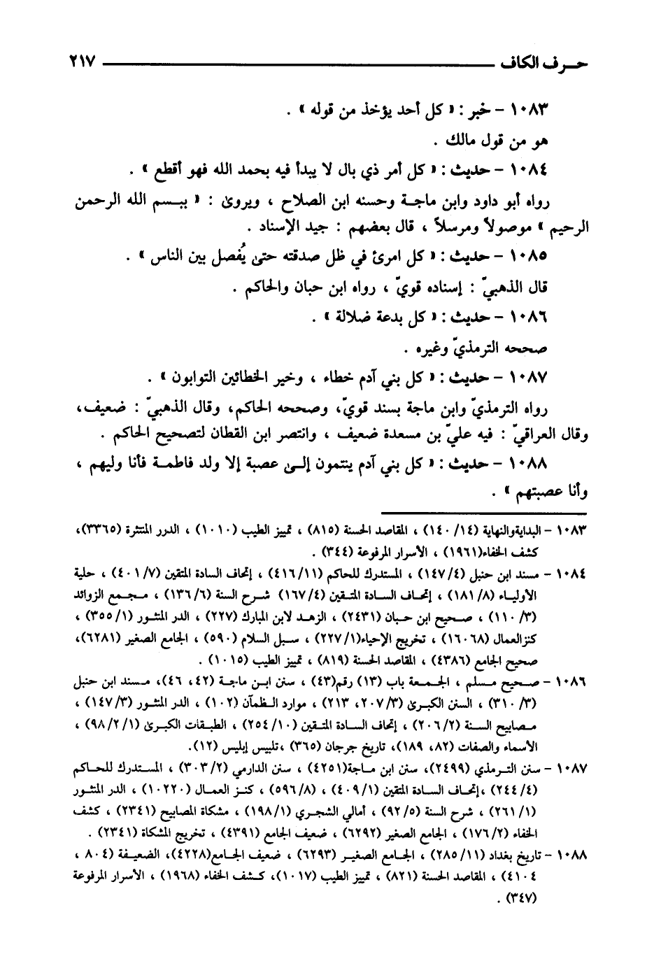 1085 - حَدِيث: " كل امْرِئ فِي ظلّ صدقته حَتَّى يفصل بَين النَّاس ". قَالَ الذَّهَبِيّ: إِسْنَاده قوي، رَوَاهُ ابْن حبَان وَالْحَاكِم.