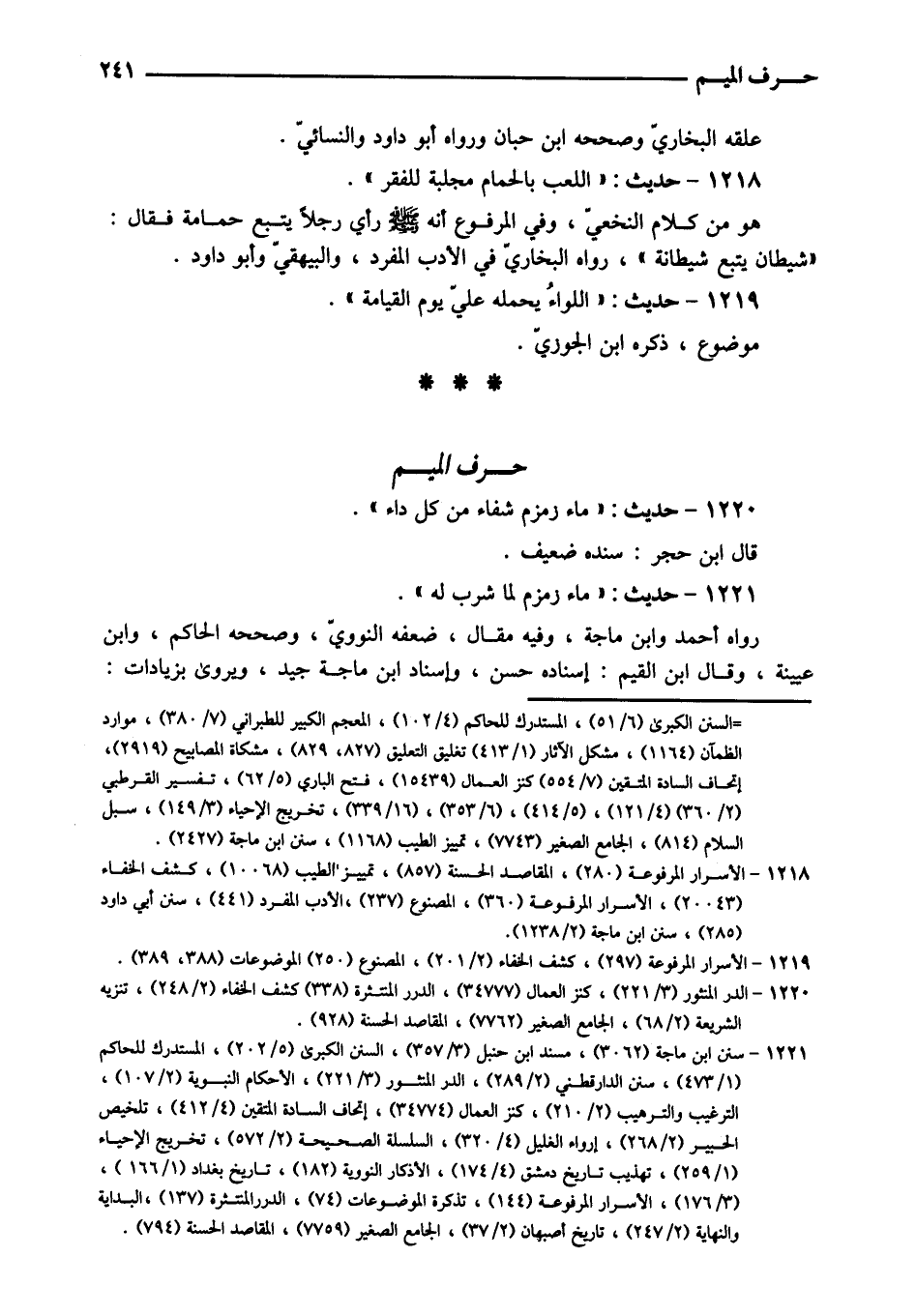 1220 - حَدِيث: " مَاء زَمْزَم شِفَاء من كل دَاء ". قَالَ ابْن حجر: سَنَده ضَعِيف.