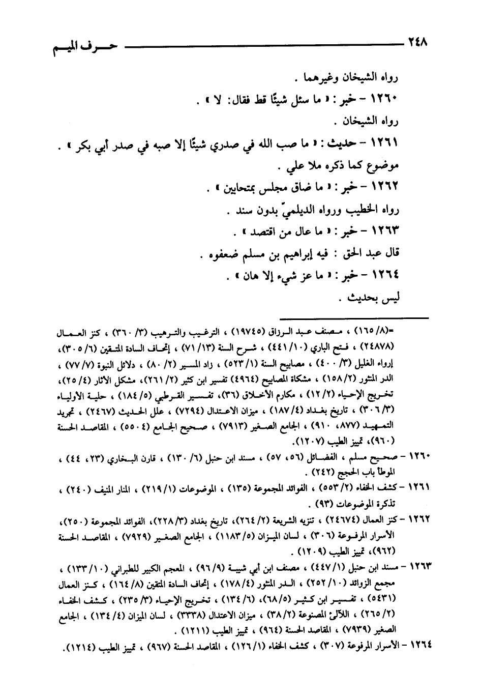1260 - خبر: " مَا سُئِلَ شَيْئا قطّ فَقَالَ: لَا ". رَوَاهُ الشَّيْخَانِ.