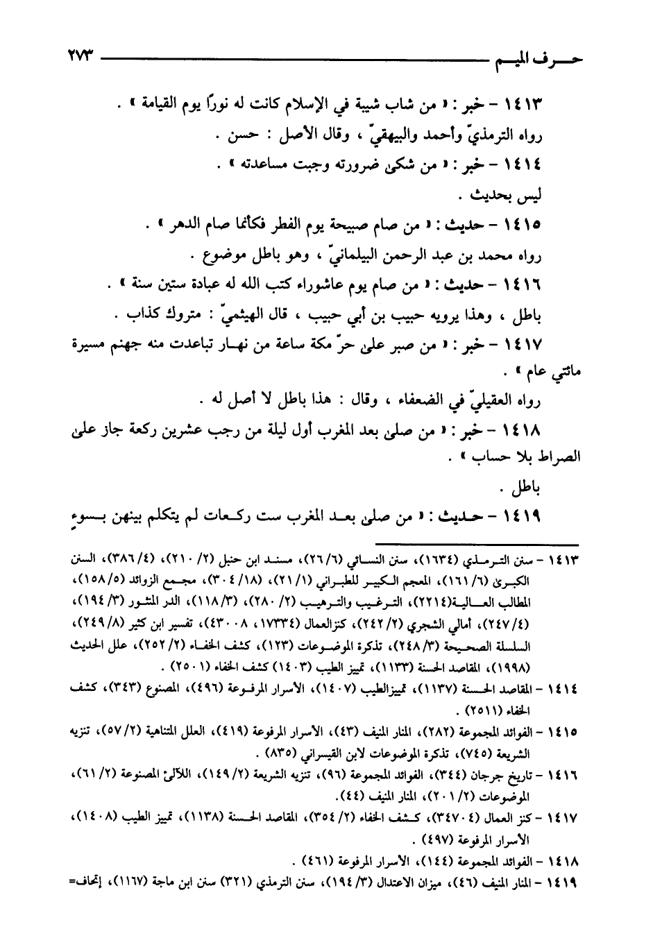 1418 - خبر: " من صلى بعد الْمغرب أول لَيْلَة من رَجَب عشْرين رَكْعَة جَازَ على الصِّرَاط بِلَا حِسَاب ". بَاطِل.
